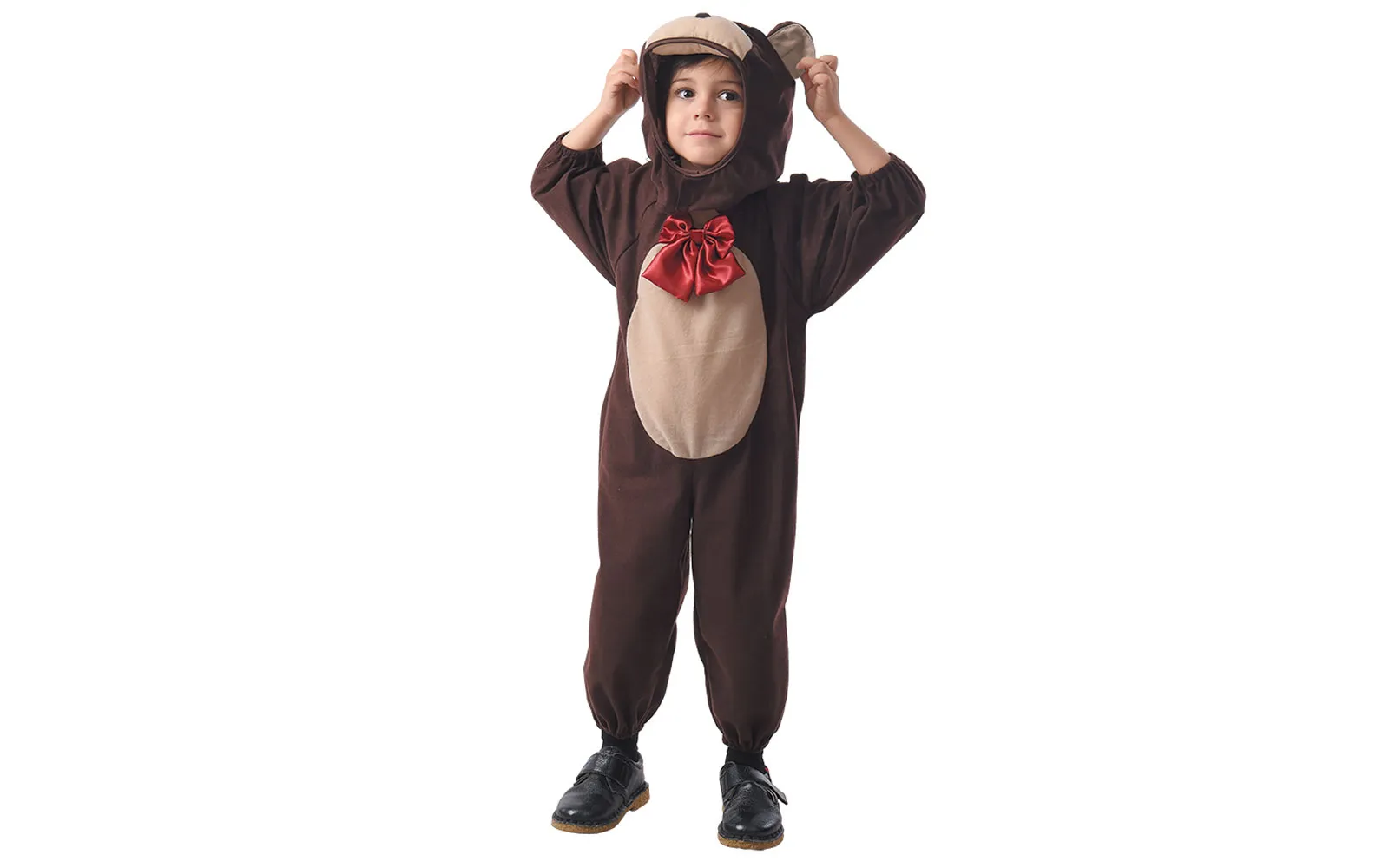 Ein charmantes Bärenkostüm für jüngere Kinder. Erhältlich in zwei Größen 80-92 cm und 92-104 cm. Inhalt: Kleid mit Kapuze (Schuhe nicht enthalten). Zusammensetzung: 100% POLYESTER.