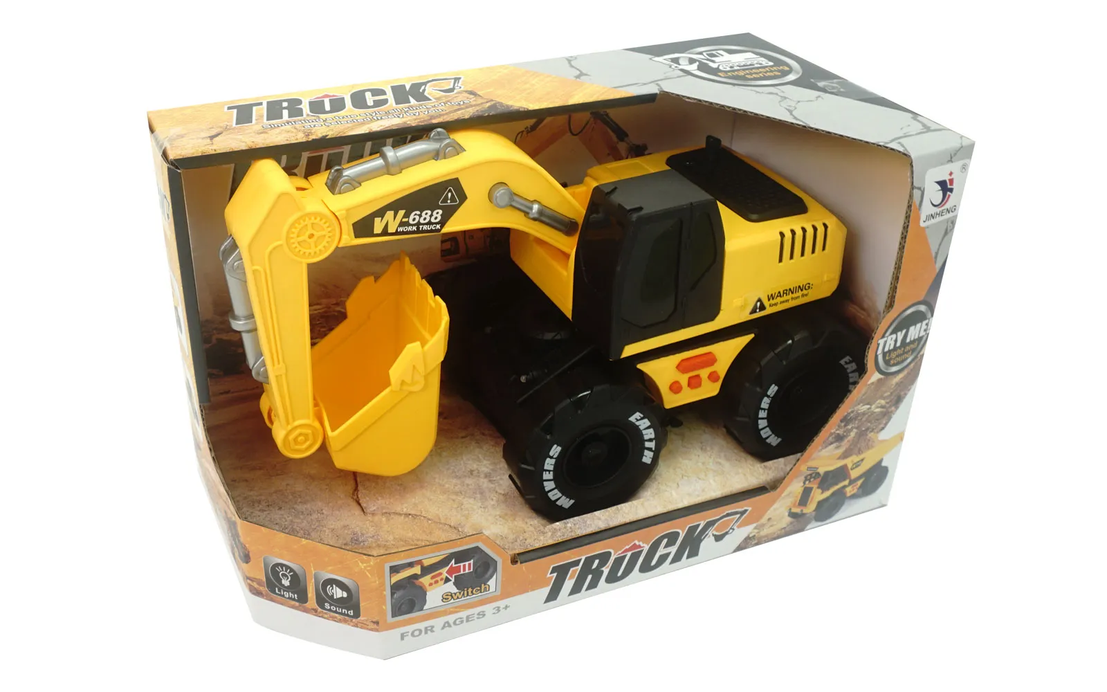 26 cm großer Bagger mit Reibungsantrieb, Sound und Blinklichtern.
