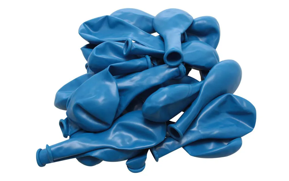In der Tüte befinden sich 24 blaue Luftballons. Blasen Sie die Ballons auf, verwenden Sie sie zur Dekoration auf der Party oder spielen Sie einfach mit ihnen.