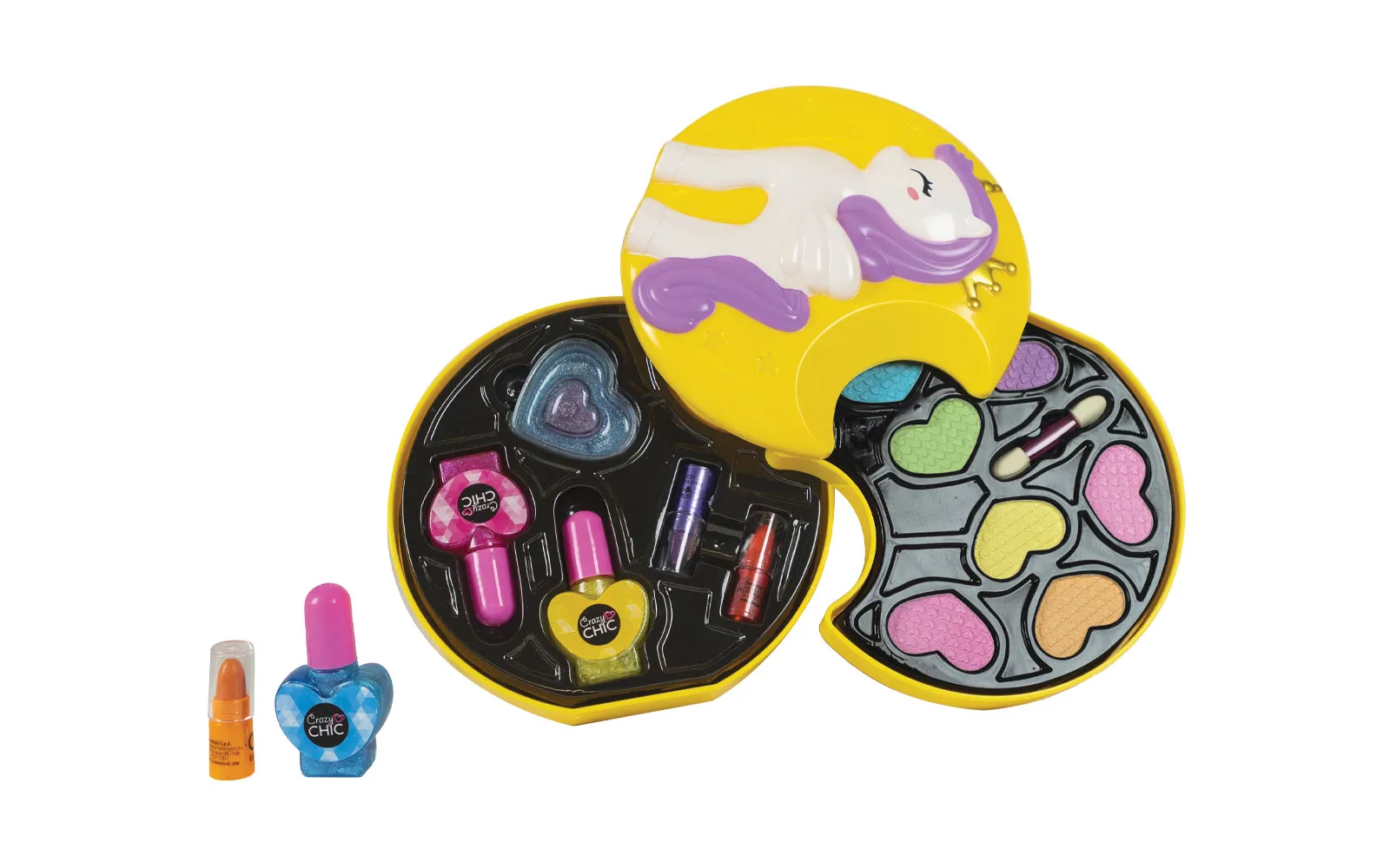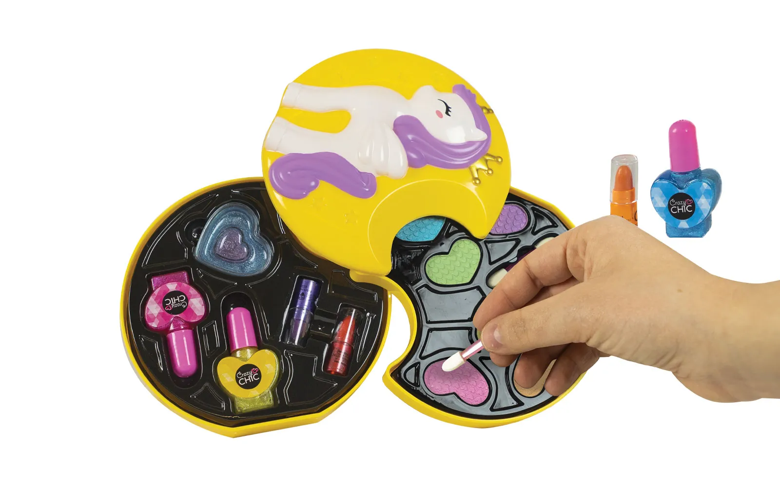 Crazy Chic Schminkset mit einem Einhornmotiv. Erstrahlen Sie in vollem Glanz, denn das Set enthält alles, was Sie für ein perfektes Make-up brauchen. Das Set enthält Lippenstift, Nagellack, Lipgloss und Lidschatten.