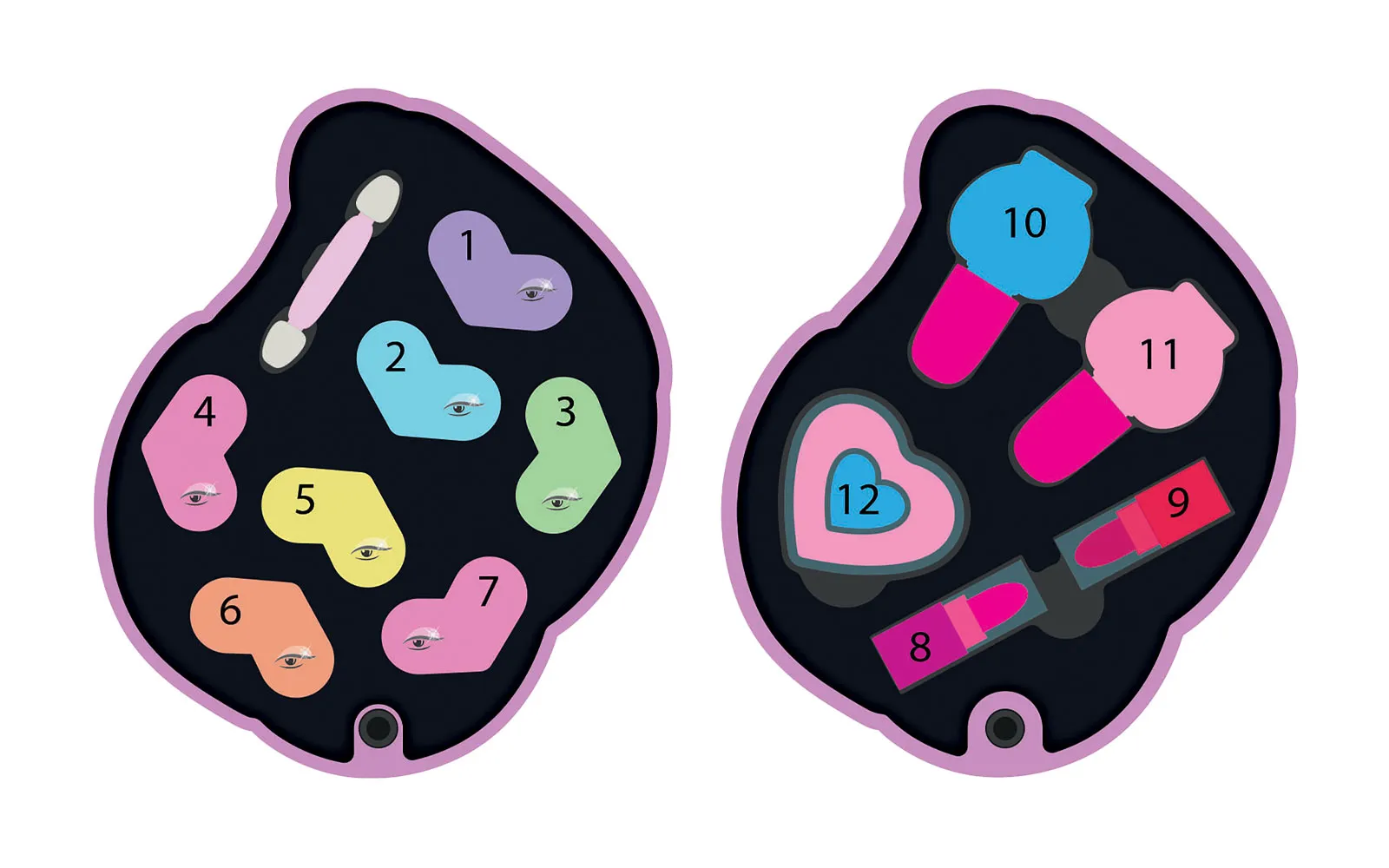 Einhörner sind wunderschöne und geheimnisvolle Kreaturen, die viel Freude in die Welt bringen. Das können Sie auch von dem Crazy Chic Schminkset mit Einhornmotiv erwarten. Wählen Sie Ihr Make-up und lassen Sie den Spaß beginnen. Das Set enthält Lippenstift, Nagellack, Lipgloss, Lidschatten und einen Applikator, um alles aufzutragen. Die Makeup-Palette hat eine praktische Form, so dass Mädchen sie überallhin mitnehmen können. nnZUTATEN:nn(1-7) POWDERED EYE SHIMMER – 4.2 g: Talkum, Glimmer, Magnesiumstearat, Ethylhexylpalmitat, Polybuten, Panthenol, Phenoxyethanol, Octan-1,2-diol,Etylhexylglycerin, Parfum – Erdbeere. +/-: CI 45410, CI 19140, CI 42090.nn(8-10) LIPSTICK – 1.5 g: Ricinus Communis Seed Oil, Ethylhexyl Palmitate, Candelilla Cera, Polybuten, Cera Alba, Tridecyl Trimellitate, Isopropyl Palmitate, Copernicia cerifera Cera, Phenoxyethanol, Parfum – Strawberry. +/-: CI 45410, CI 19140, CI 42090.nn(11-13) NAIL POLISH – 15 ml: Aqua, Polyvinyl Alcohol, Mica, Carbomer, Sorbitan, Sesquioleate, Citric Acid, Phenoxyethanol, Octane-1,2-diol, Etylhexylglycerin. +/-: CI 45430, CI 42090, CI 19140.nn(14) SHINY LIP GLOSS – 15 g: Polybuten, Ethylhexyl Palmitate, Tridecyl Trimellitate, Candelilla Cera, Cera Microcristallina, Cera Alba, Isopropyl Palmitate, Mica, Parfum-Strawberry, Phenoxyethanol. +/-: CI 45410, CI 42090.