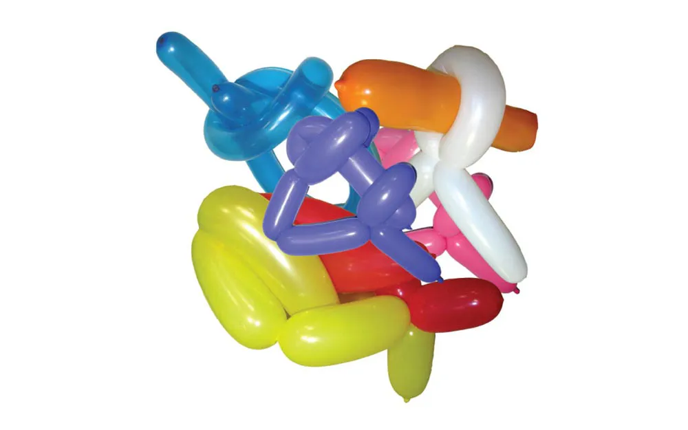 10 verschiedenfarbige Luftballons, mit denen Sie verschiedene Formen kreieren und so die länglichen Ballons nach Ihren Wünschen gestalten können, oder folgen Sie der beiliegenden Anleitung, die Beispiele für die Ballonformung enthält. Um das Aufblasen zu erleichtern, liegt den Ballons außerdem eine Minipumpe bei.