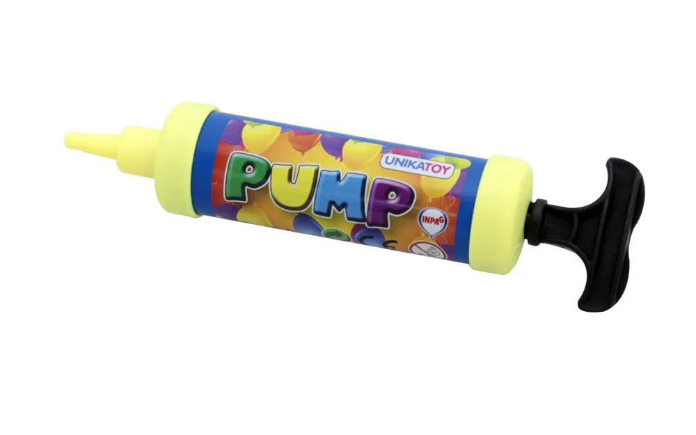 10 bunte Ballons mit einer Minipumpe.