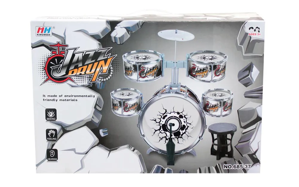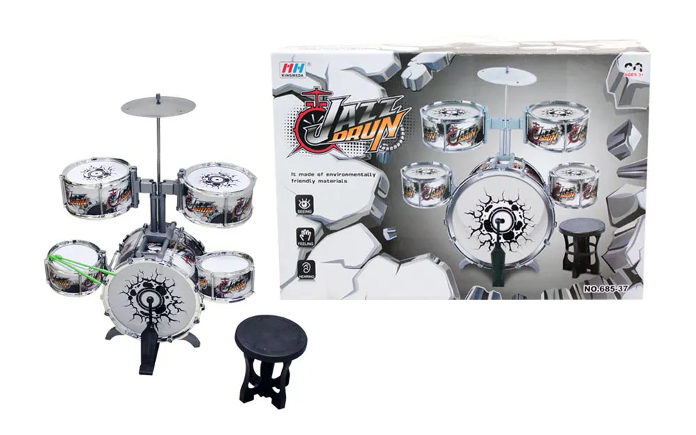 GROSSES JAZZ-SCHLAGZEUG! Spielen Sie eine lebhafte Melodie auf dem Schlagzeug und laden Sie Ihre Freunde zu einem Konzert ein! Mit diesem kompletten Schlagzeugset können Sie Ihre eigene musikalische Darbietung kreieren. Das Set enthält eine große Trommel, zwei mittlere und zwei kleine Trommeln, ein Fußpedal, Becken, zwei Trommelstöcke und einen Hocker. Alles ist bereit für Spaß und Musikkreation! ERSTKLASSIGE TROMMELN FÜR JUNGE MUSIKER. Mit Abmessungen, die Kindern einen leichten Zugang zum Spielen ermöglichen, bietet dieses Set ein großartiges Musikerlebnis. Die Trommeln sind so konzipiert, dass sie Stabilität und Komfort bieten, während die Becken die perfekte Wahl für lebhafte Rhythmen sind. SPASS FÜR DIE GANZE FAMILIE: Das Schlagzeugset bietet alles, was Sie brauchen, um energiegeladene und lustige Konzerte zu veranstalten. Es ist so konzipiert, dass es leicht zu spielen ist und gleichzeitig die Entwicklung des Kindes und seine Liebe zur Musik fördert. SET INHALT: Große Trommel, zwei mittlere und zwei kleine Trommeln, Fußpedal, Becken und zwei Sticks, Hocker (nicht geeignet für Kinder mit einem Gewicht über 48 kg). Das Jazz Drum Set ist die perfekte Wahl für alle jungen Musiker, die ihr musikalisches Abenteuer beginnen und Spaß am Kreieren von Rhythmen haben wollen! Ideal für alle Kinder, die es lieben, Musik zu machen und dabei Spaß zu haben!