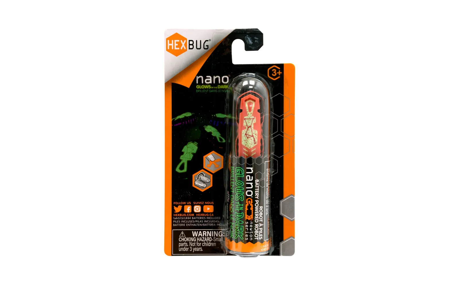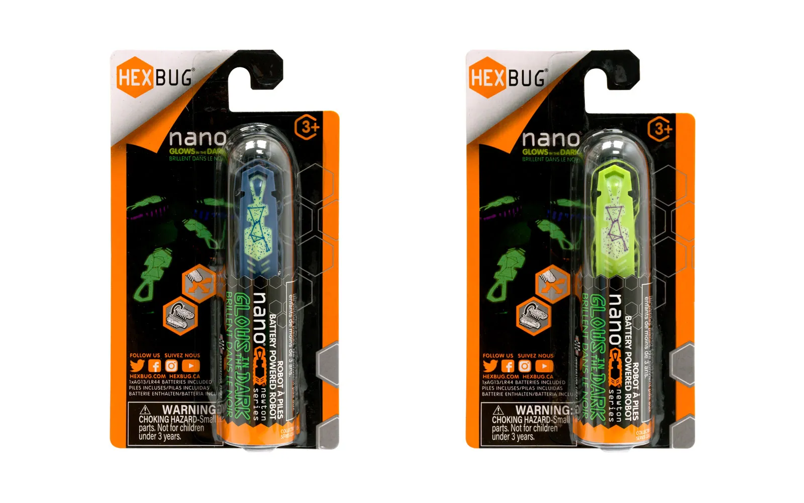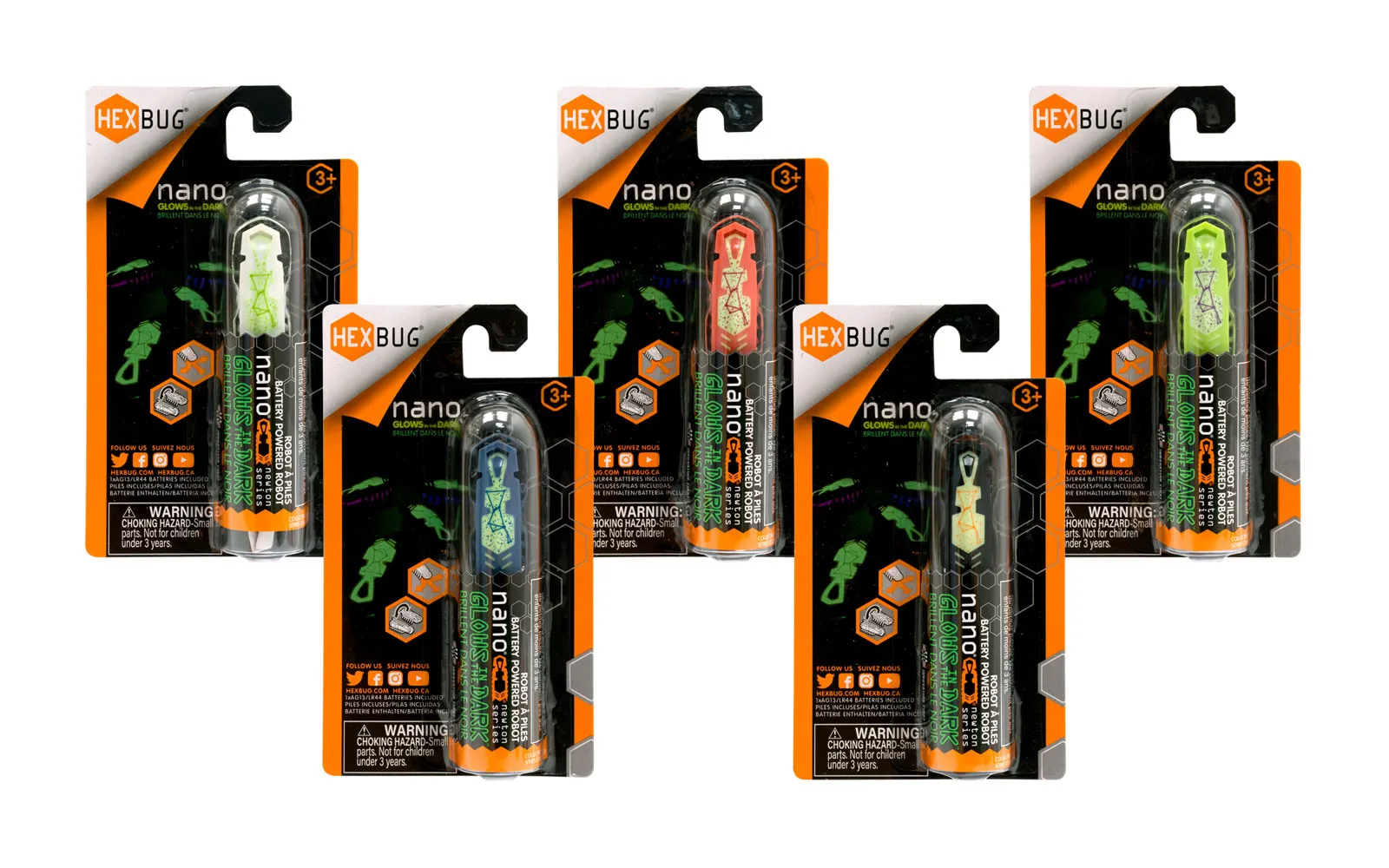 Der Hexbug Nano Glow in the Dark Käfer ist ein Mikro-Roboter, der vibriert, sich wie ein echter Käfer bewegt und in mehreren Farben erhältlich ist – blau, weiß, grün, rot und schwarz. Der Käfer leuchtet im Dunkeln.
