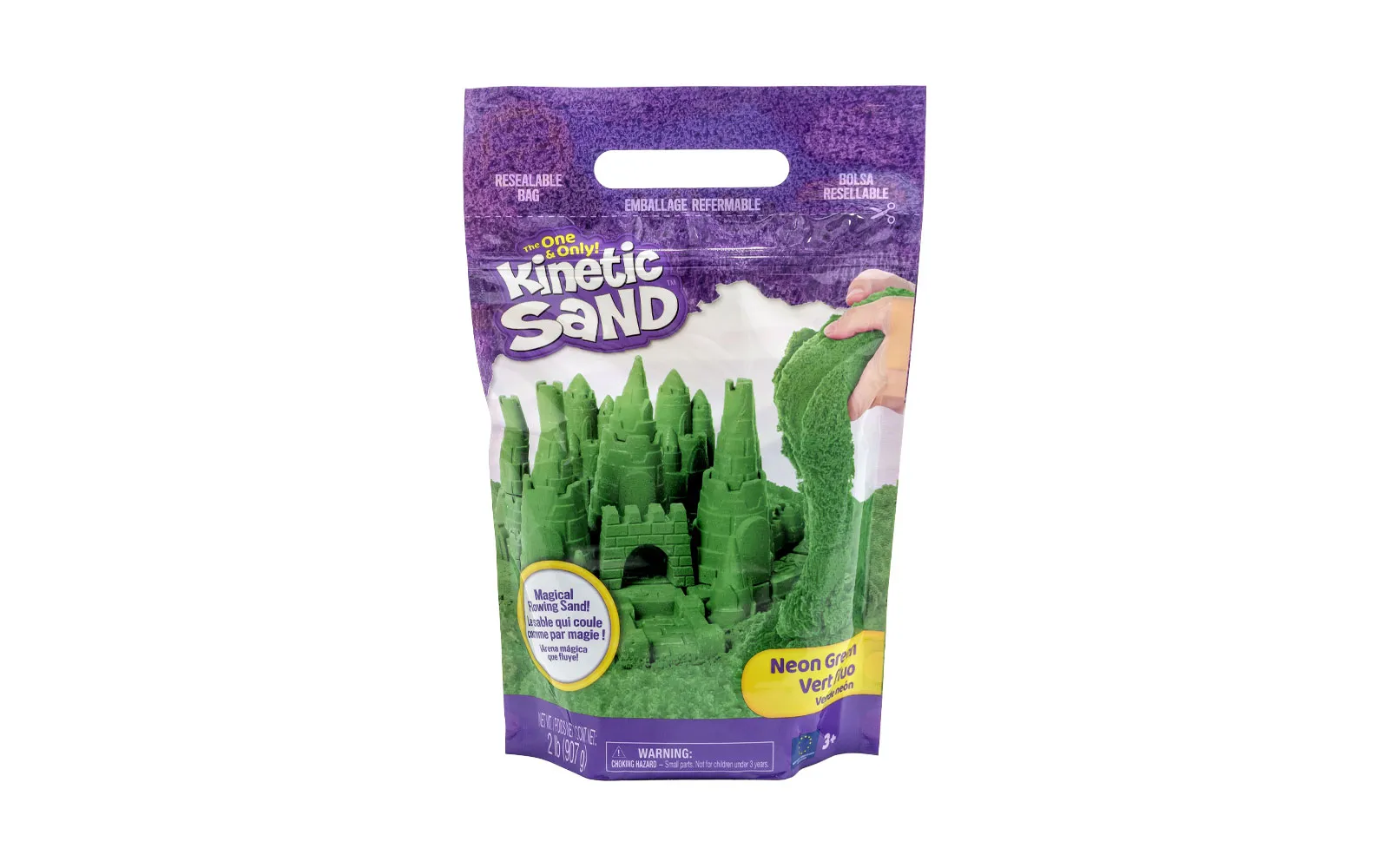 Kinetischer Sand in einem Beutel vom Hersteller Spin Master. Der Beutel enthält 907 g des bekannten Kinetic Sand, der sich ideal für die Gestaltung von Sandkunstwerken eignet. Der Sand von Kinetic Sand wird in Schweden hergestellt.