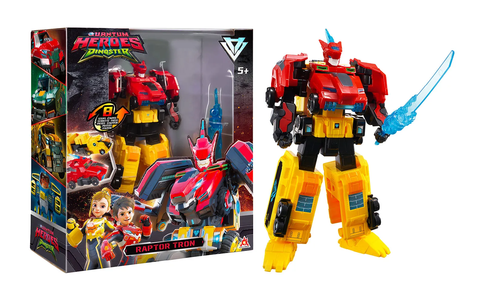 Entdecken Sie die unglaubliche Welt der Dinosaurier mit dem Dinoster-Team! Auf ihren Abenteuern meistern vier Freunde große Herausforderungen, um die Dinosaurier zu schützen. Willkommen im Team Dinoster! Erforschen Sie die Welt der Dinosaurier und begeben Sie sich auf ein Abenteuer mit dem kleinen Raptor Tron, Dinoster. Erforschen und retten Sie Dinosaurier mit dem kleinen Raptor Tron! Er ist mutig und findet leicht Anschluss an die Dinosaurier. Das Set enthält 2 Fahrzeuge und ein Add-on. Der Raptor hat zwei Hauptverwandlungsarten: Dino-Truck oder Dino-Transformator. Der Roboter hat viele bewegliche Teile. Die Höhe der Figur beträgt 24 cm.