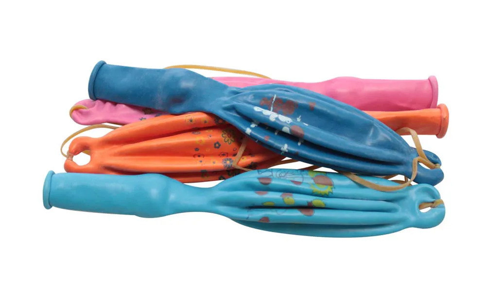 Die Tasche enthält 5 Ballons in verschiedenen Farben auf dem Gummiband.