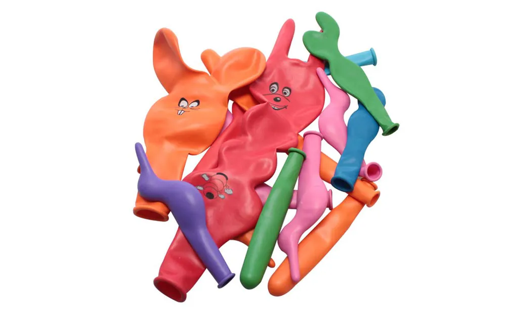 Verschiedene Farben und Formen, es gibt Ballons, die, wenn sie aufgeblasen werden, verschiedenen Tieren ähneln. Es sind 16 Ballons in der Tüte.