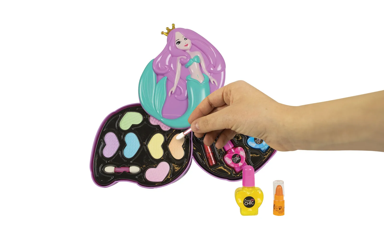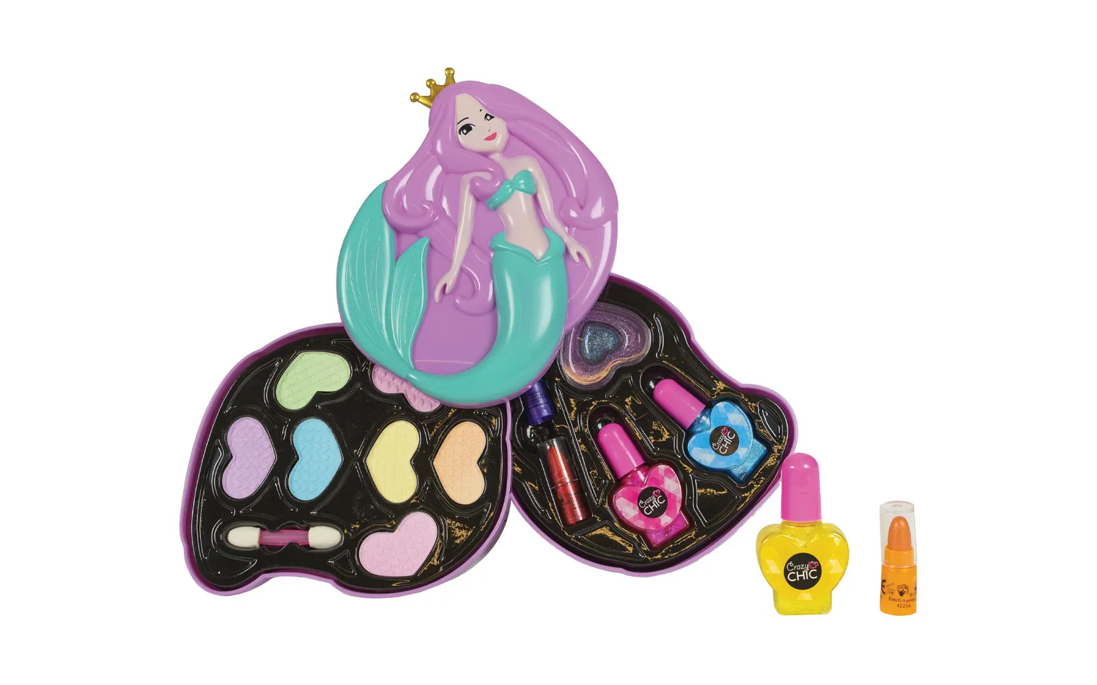 Crazy Chic Schminkset mit Meerjungfrauenmotiv. Glänzen Sie wie nie zuvor, denn der Artikel enthält alles, was Sie für ein perfektes Make-up brauchen. Das Set enthält Lippenstift, Nagellack, Lipgloss und Lidschatten.