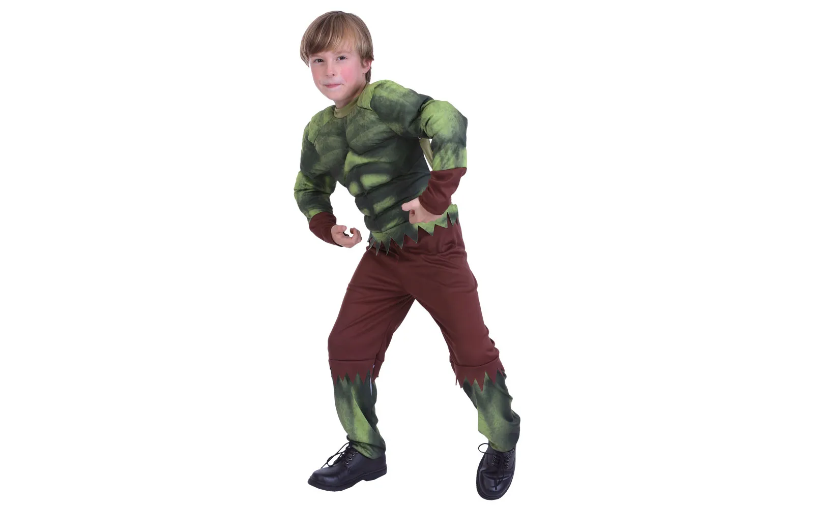 Kinderkostüm der allmächtigen Bestie mit Muskeln. Erhältlich in drei Größen: 110-120, 120-130 und 130-140 cm.