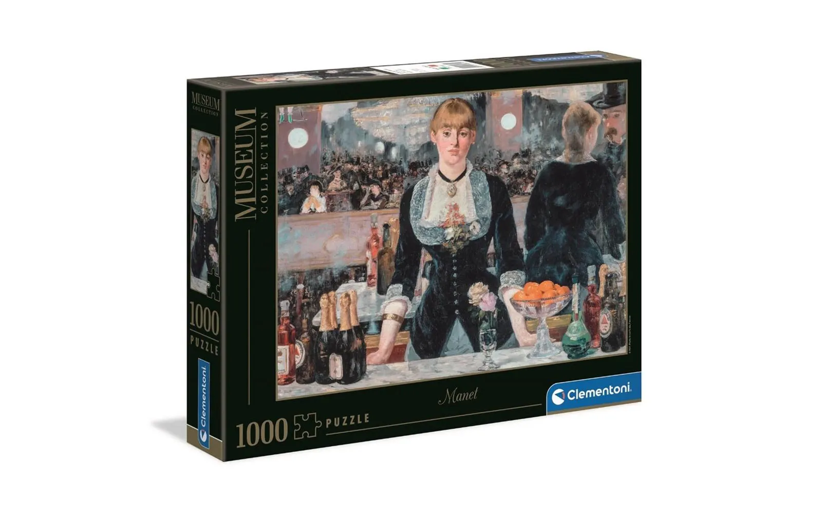 Clementoni-Puzzle mit 1000 Teilen, Motiv: Museum Bar Folie Bergers. Größe des zusammengesetzten Puzzles: 69 x 50 cm.