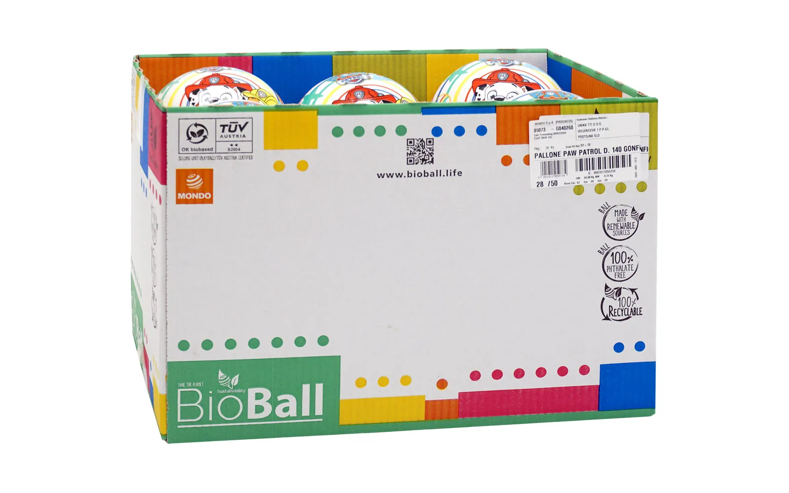 Ein süßer kleiner Kinderball mit einem Durchmesser von 140 mm mit einem Paw Patrol Motiv. Der Ball wird nach einer umweltfreundlichen Formel hergestellt, bei der 50 % der fossilen Derivate durch erneuerbare Pflanzenderivate ersetzt werden. Das neue Material ist viel umweltfreundlicher und ermöglicht ein besseres Recycling und die Wiederaufbereitung von Spielzeug.