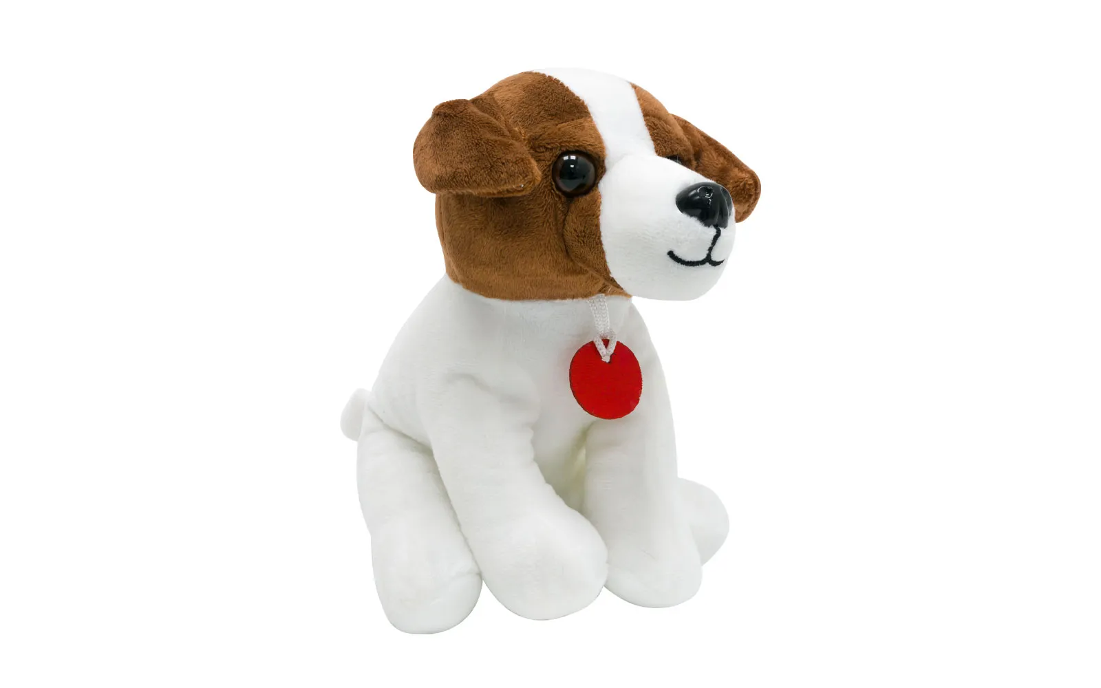 Plüsch sitzender Welpe, weiß-braune Farbe, 18 cm