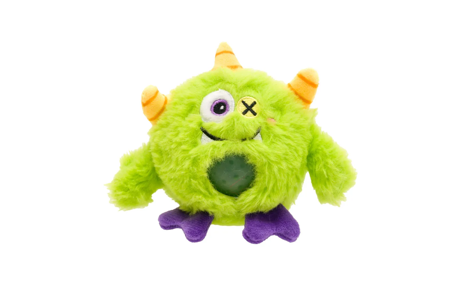 Plüschmonster Squizi, ein Unikatoy mit furchterregendem Aussehen und Kugeln im Bauch. Die Figur ist aus weichem Material gefertigt und der Bauch ist dehnbar. Erhältlich in verschiedenen Farben und Ausführungen: grün, lila, orange oder gelb.