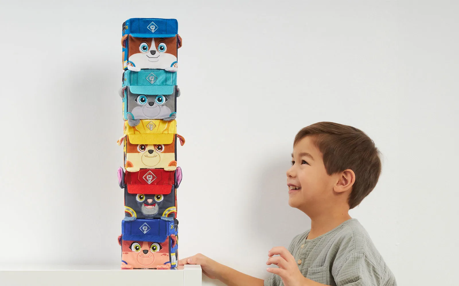 Plüschwürfel mit den Helden Rubble und Crew, Paw Patrol, Spin Master. Der Plüschwürfel ist weich und farbenfroh, was Ihre Kinder begeistern wird. Erhältlich als verschiedene Helden von Rubble und Crew von Paw Patrol – Rubble, Charger, Mix, Motor und Wheeler.