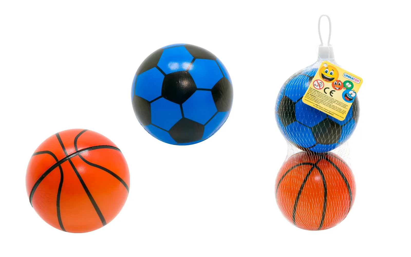 Set mit 2 Bällen – Mini-Basketball und Fußball. Der Durchmesser des Balls beträgt 10 cm.