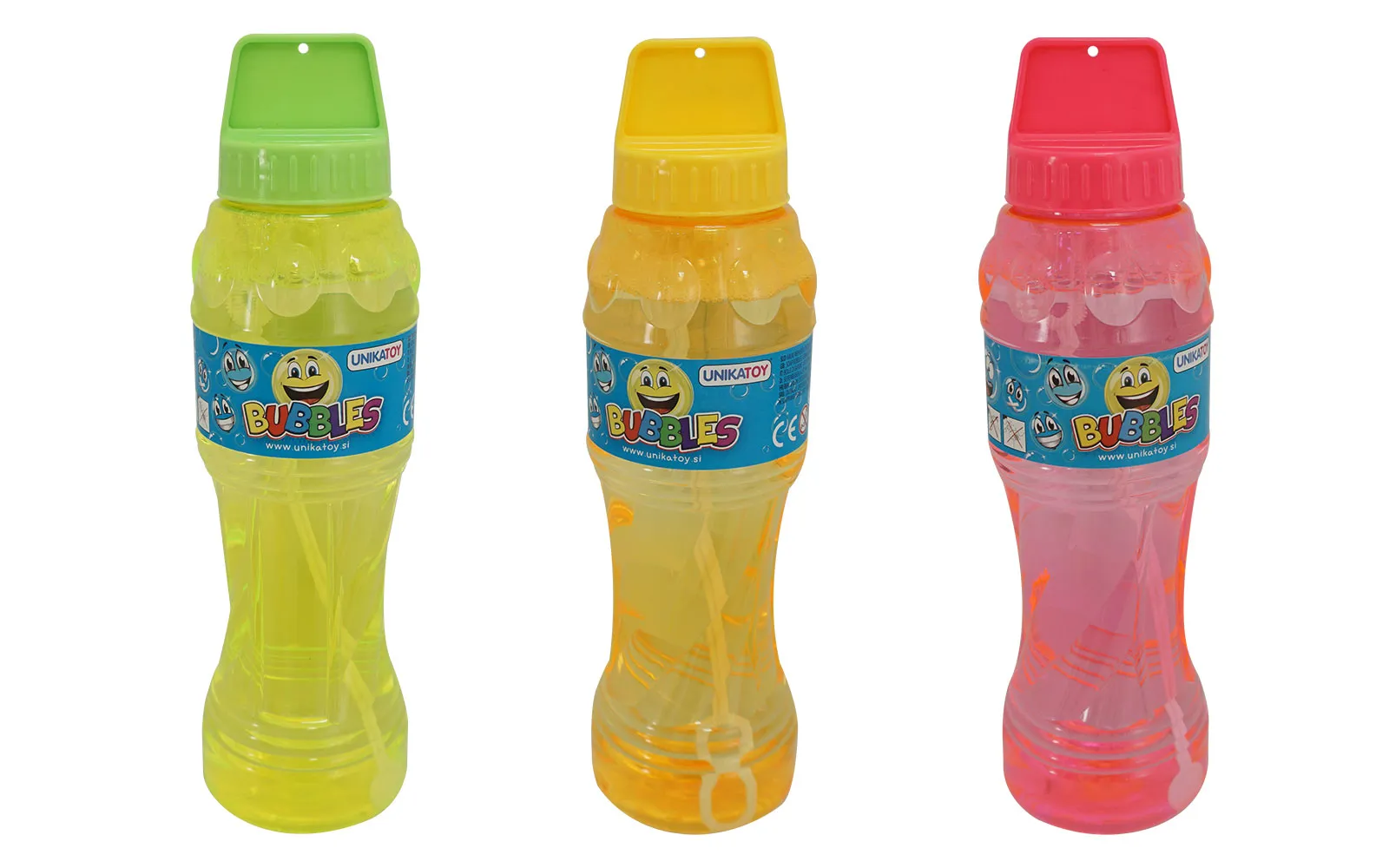 1 Liter Sprudelflüssigkeit in einer PVC-Flasche in rosa, gelber oder grüner Farbe.