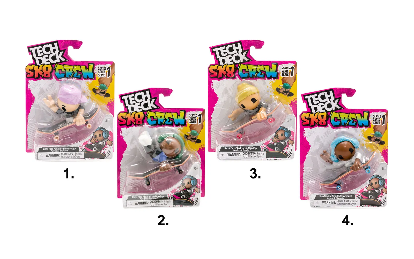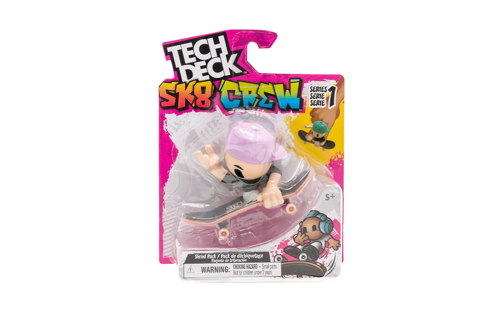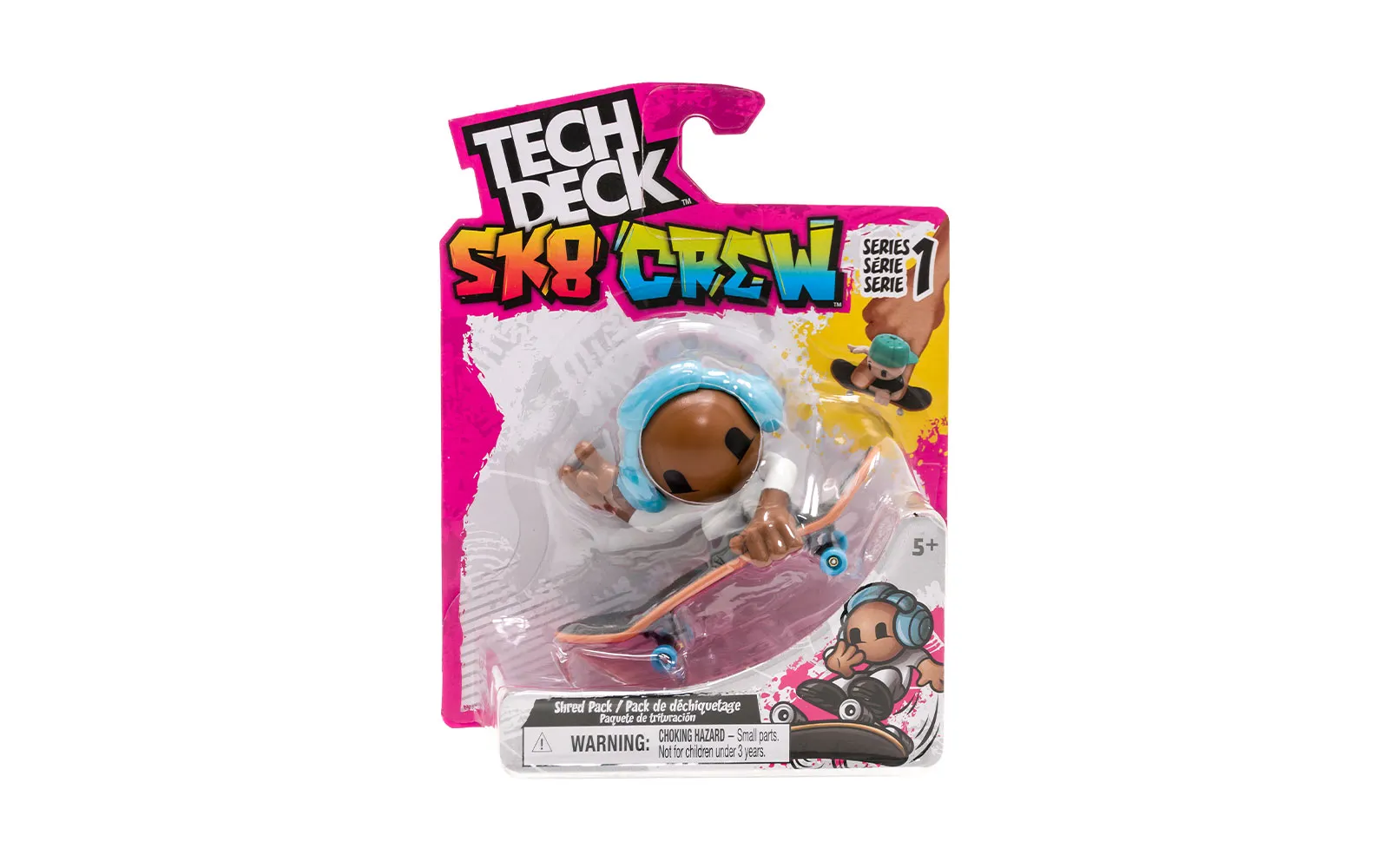Set aus Skateboard und Figur, Sk8 Crew, Tech Deck, Spin Master. Lernen und verbessern Sie Ihre Finger-Skateboarding-Fähigkeiten mit den Sk8 Crew-Figuren. Stellen Sie die Figur auf Ihr Finger-Skateboard und führen Sie echte Skateboard-Tricks aus, überwinden Sie Rampen, Slides und mehr!