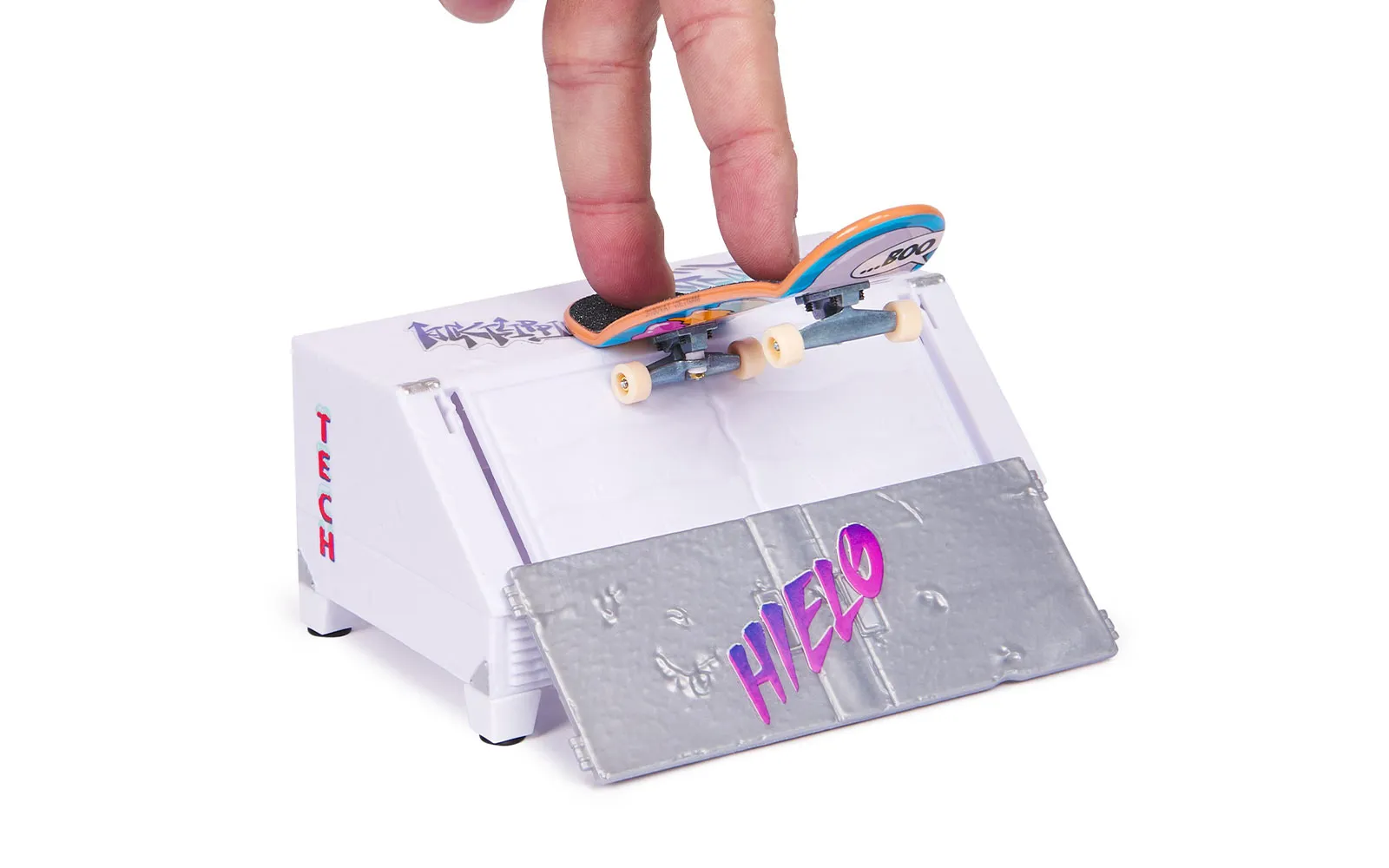 Set aus zwei Tech Deck Skateboards mit Rampe. Messen Sie sich mit Ihren Freunden und sehen Sie, wer mehr Stil auf einem Mini-Skateboard hat. In diesem Set erhalten Sie zwei Tech Deck Skateboards und eine Rampe, um Tricks auszuführen. Sind Sie bereit, neue Tricks zu lernen?