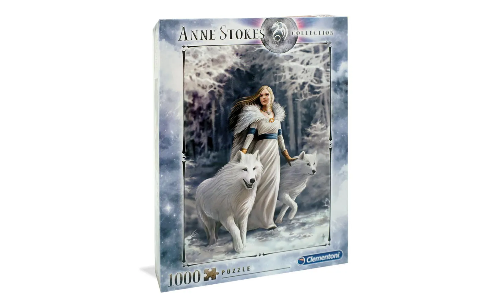 Clementoni-Puzzle mit 1000 Teilen, Motiv: Gemäldesammlung von ANNE STOKES – Winterwächter. Größe des fertigen Puzzles: 50 x 69 cm.