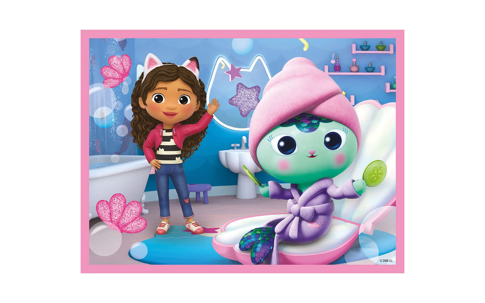 Beliebte Figuren aus Gabby’s Dollhouse: Die Kinder können ihre Lieblingsfiguren wie Gabby, Pandy Paws, Kitty Fairy und andere Charaktere aus der Serie in einem wunderschönen Puzzle-Motiv entdecken.
